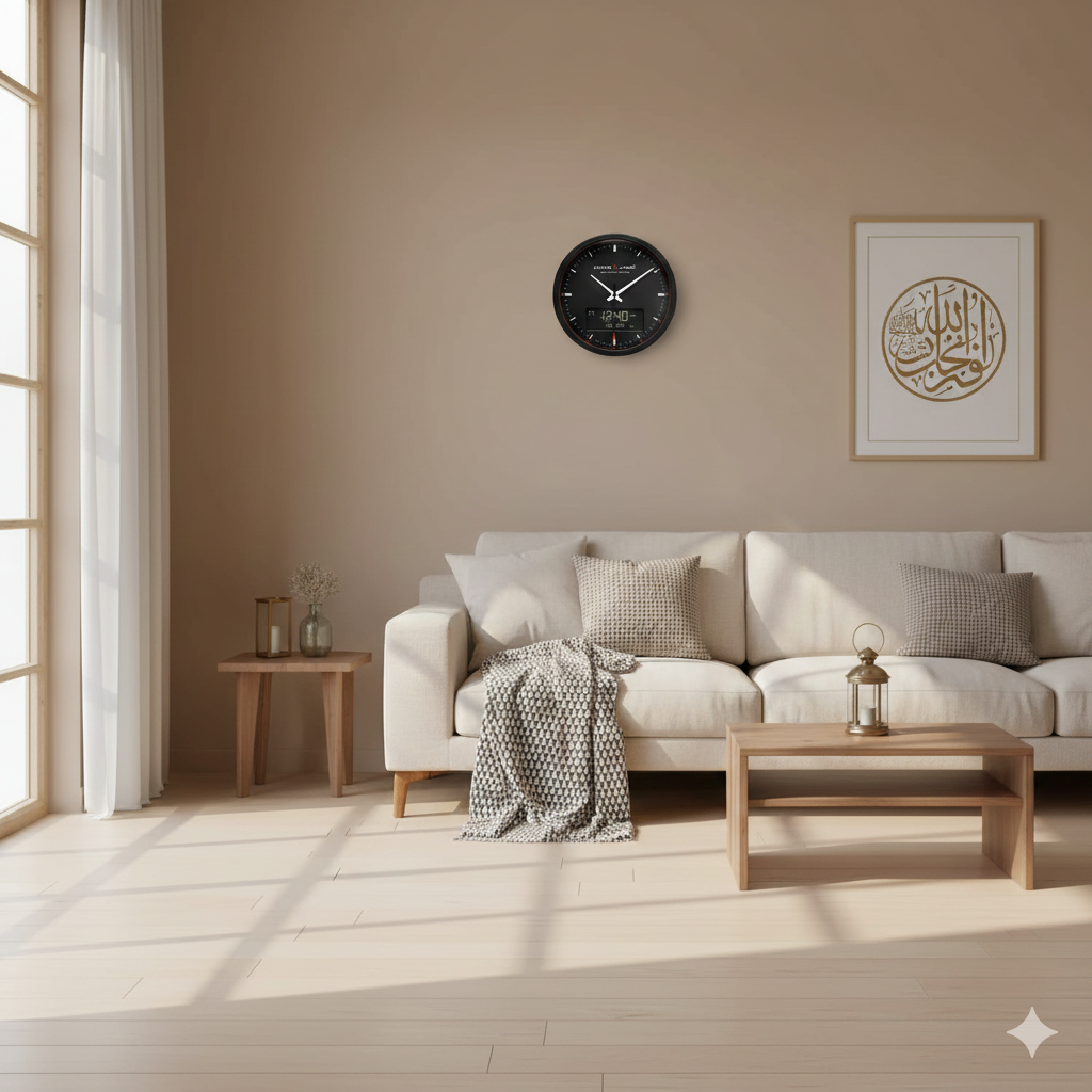 The ALFAJR Model CR-23 is a high-precision Islamic wall clock designed to support your daily worship with complete accuracy and convenience. Featuring crystal-clear digital Azan audio, intelligent prayer time calculations for cities worldwide, and advanced calendar and alarm functions, this premium clock is perfect for every Muslim household, masjid, school, or office.