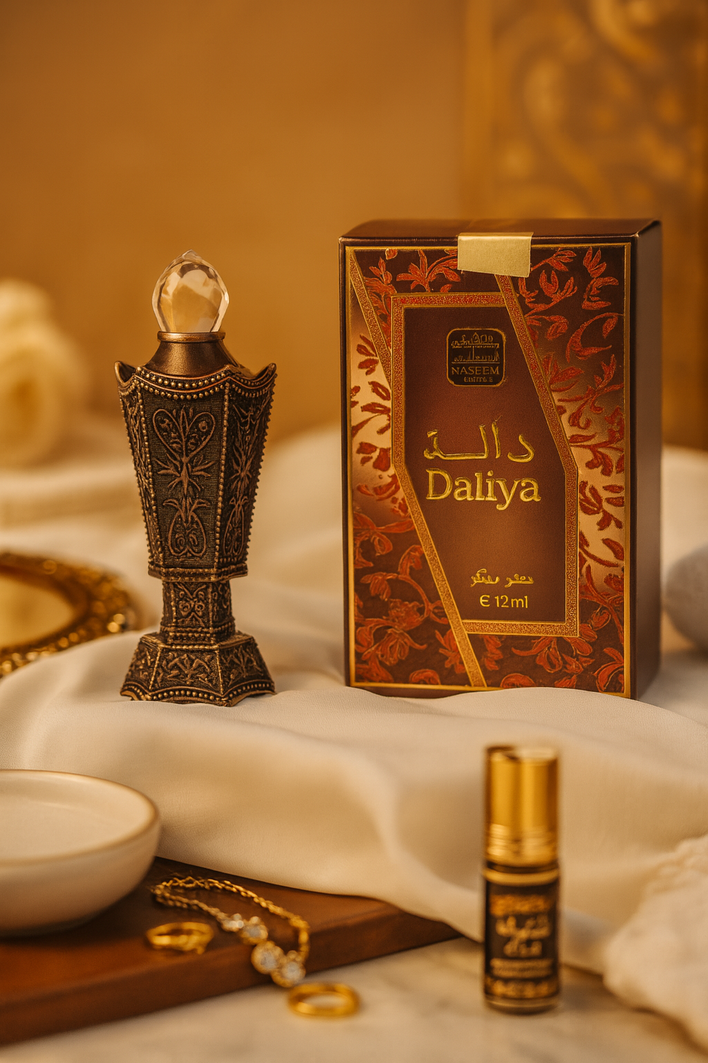 Daliya by Naseem Perfumes is a premium concentrated perfume oil crafted in the UAE and designed for long-lasting fragrance lovers. This alcohol-free attar comes in an elegant 12ml bottle, offering a rich Arabian scent profile suitable for daily wear or special occasions. Perfect for both personal use and gifting, it embodies the luxurious tradition of Middle Eastern perfumery.