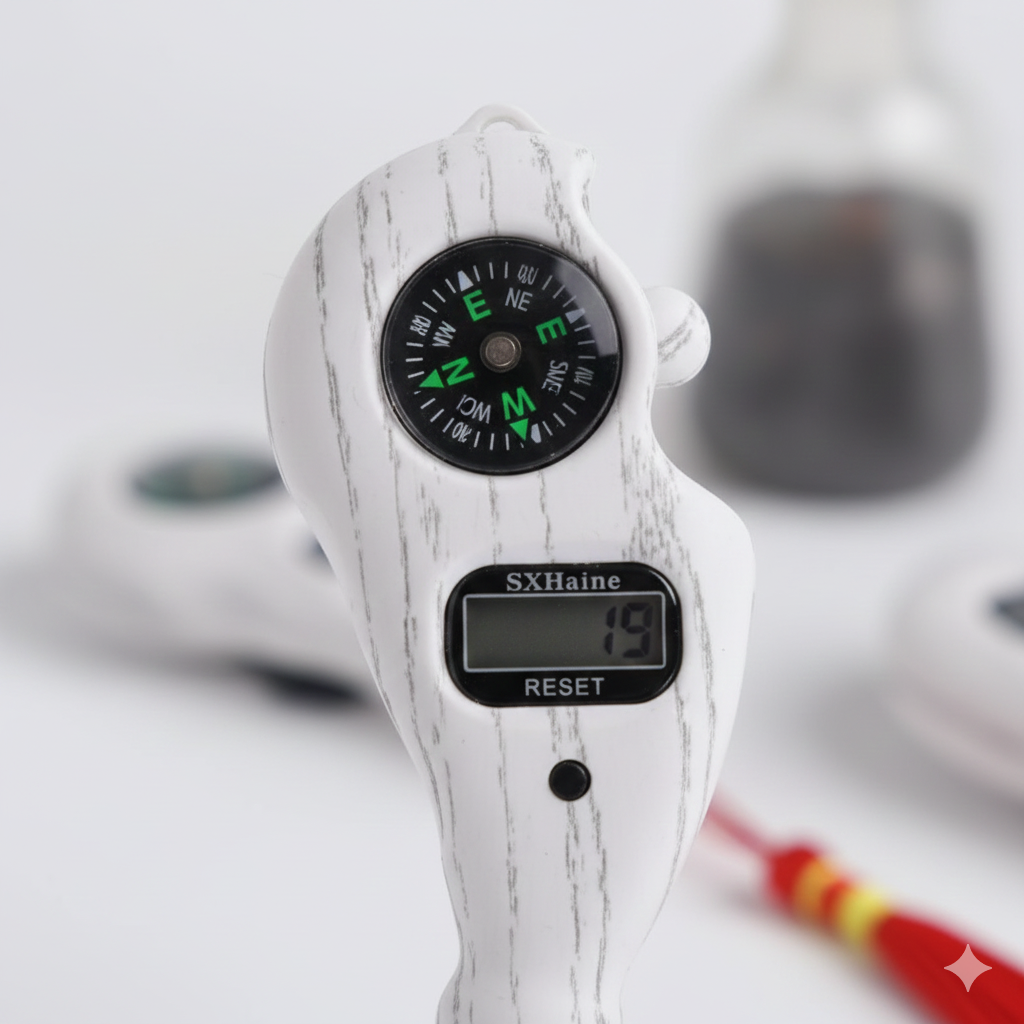 This innovative device is a portable, rotating prayer beads system equipped with a Digital Counter and a Qibla Compass. It is designed for ease of use, featuring scroll count and low-noise operation; simply scroll down the thumb on the smooth roller to start counting.
