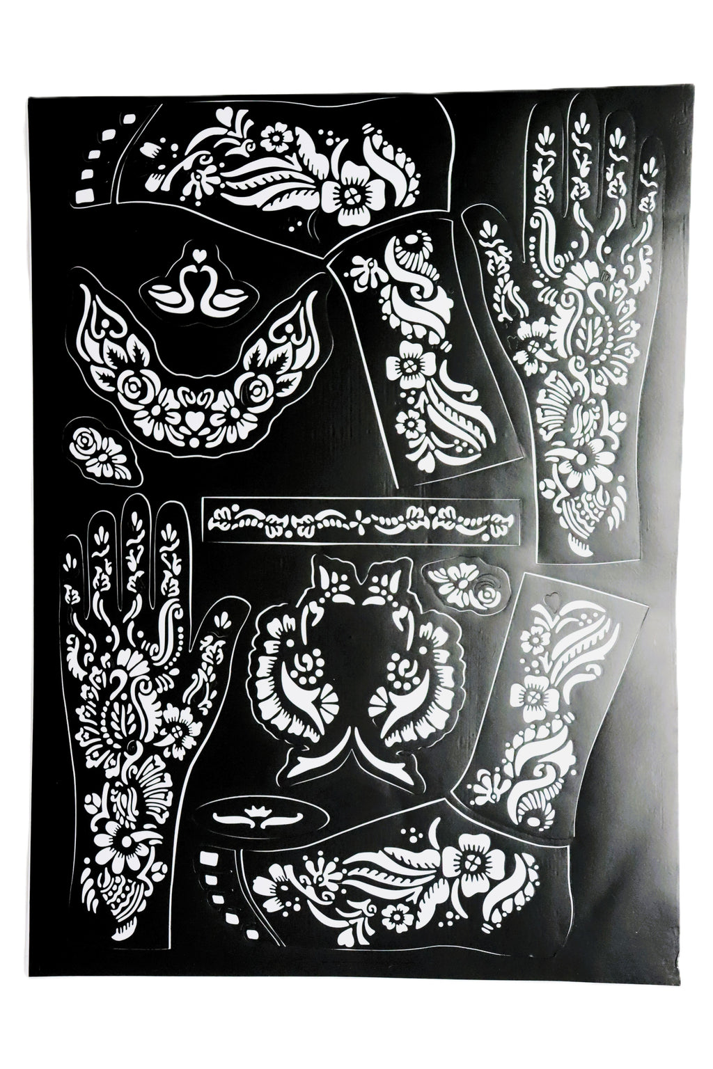 Elevate your Mehndi and henna designs with our Sheets of Stencil Templates in large sizes. Whether you're a seasoned artist or just starting out, these templates will revolutionize your creativity, making it easier than ever to craft intricate and stunning designs. Apply the stencil to the skin, spread your henna paste, allow it to dry, and reveal your masterpiece. With these stencils, anyone can achieve professional-looking results with ease.