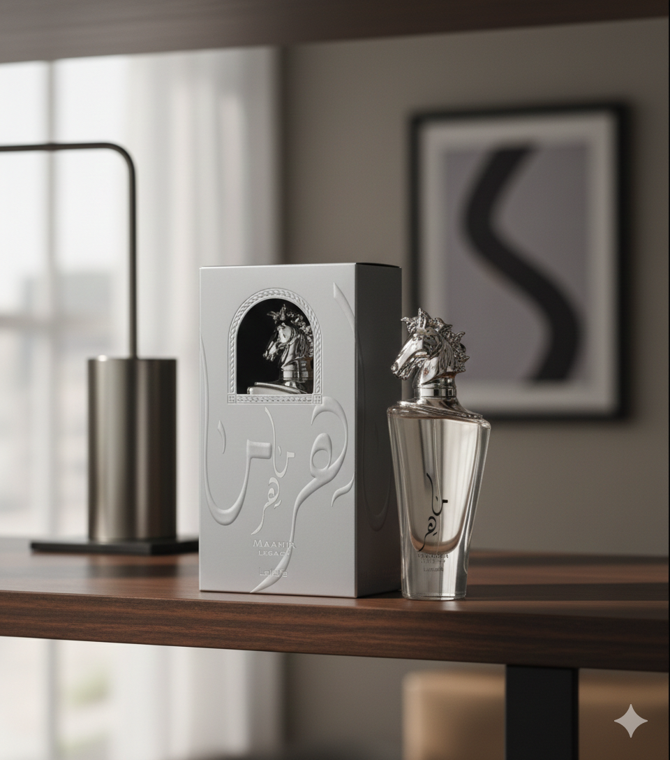 A Masterpiece of Elegance and Allure Maahir Legacy by Lattafa Perfumes is a sophisticated and refreshing fragrance designed specifically for the modern man. Encased in a stunningly designed silver bottle featuring an iconic horse head cap, this scent embodies strength, heritage, and timeless refinement.