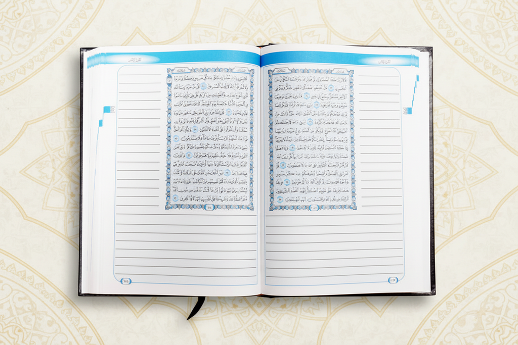 - Wide Ruled Margins: The Quran is designed with wide ruled margins, providing plenty of space for writing notes on Tajweed, memorization, reflections, and more.