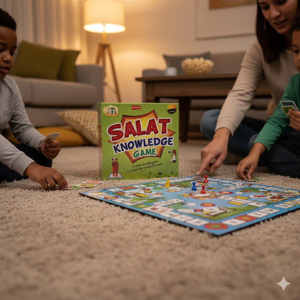 The game vividly teaches the importance of prayer: if you miss a prayer, you go down the slippery slide, but if you offer it on time and with care, you climb up the ladder. Players can win Salat Cards and increase their knowledge about the five daily prayers by answering questions correctly. This game ensures you don't just race for the finish, but truly learn all about salat in a fun and engaging way.